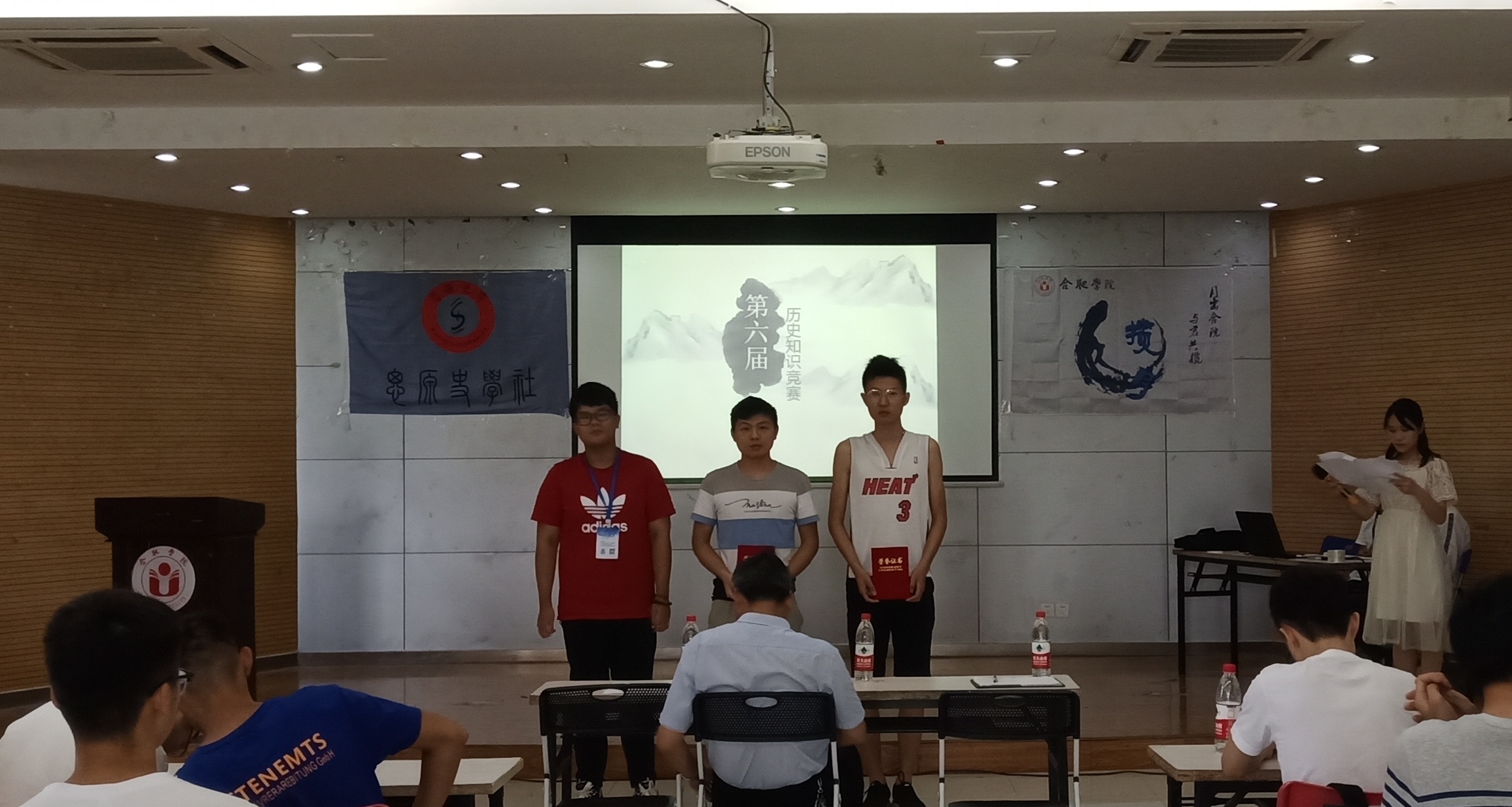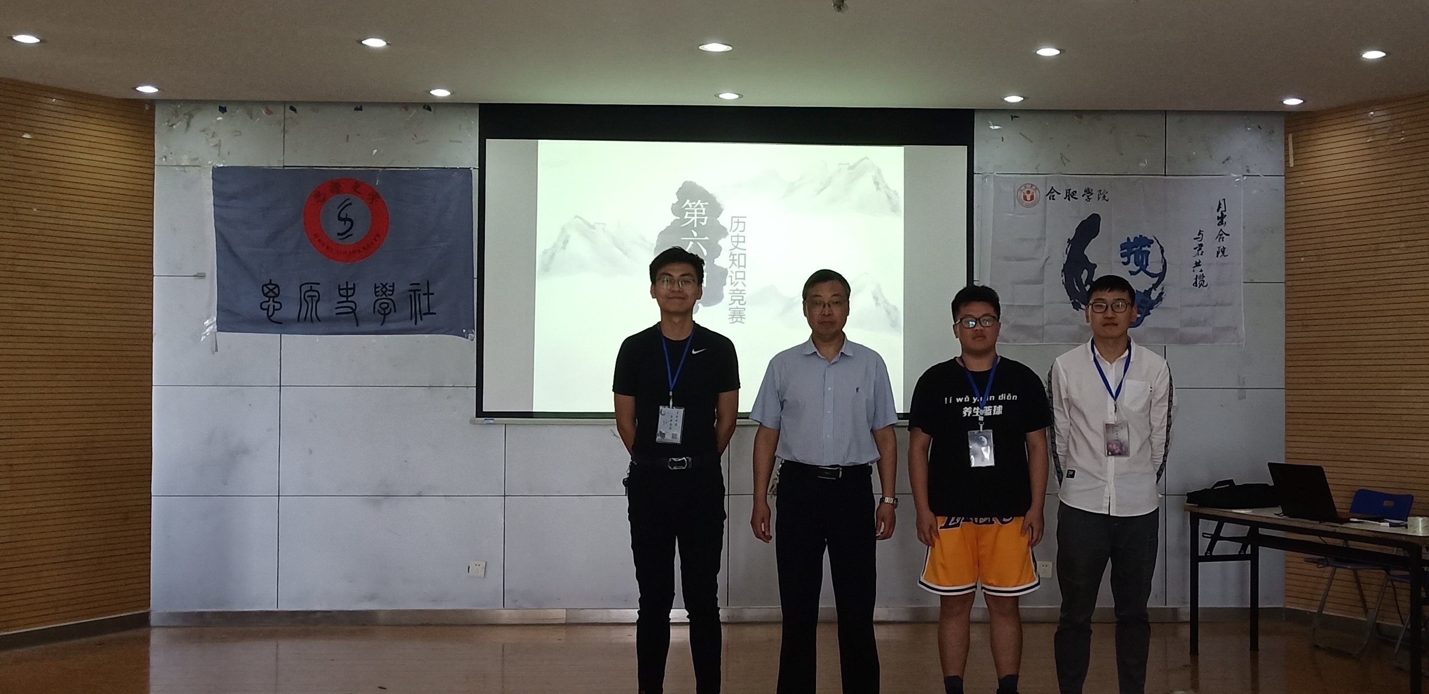 | 2019年6月2日下午三點(diǎn),由思源史學(xué)社與攬?jiān)略娚绯修k的第六屆歷史知識(shí)競(jìng)賽決賽在大學(xué)生活動(dòng)中心室2順利進(jìn)行,最終圓滿落幕。馬克思主義學(xué)院教學(xué)督導(dǎo)、中國特色社會(huì)主義理論與實(shí)踐研究課程負(fù)責(zé)人、思源史學(xué)社指導(dǎo)老師姜從山,學(xué)生社團(tuán)聯(lián)合會(huì)組織部部長劉建軍,攬?jiān)略娚缲?fù)責(zé)人盧冉作為本次比賽的嘉賓。