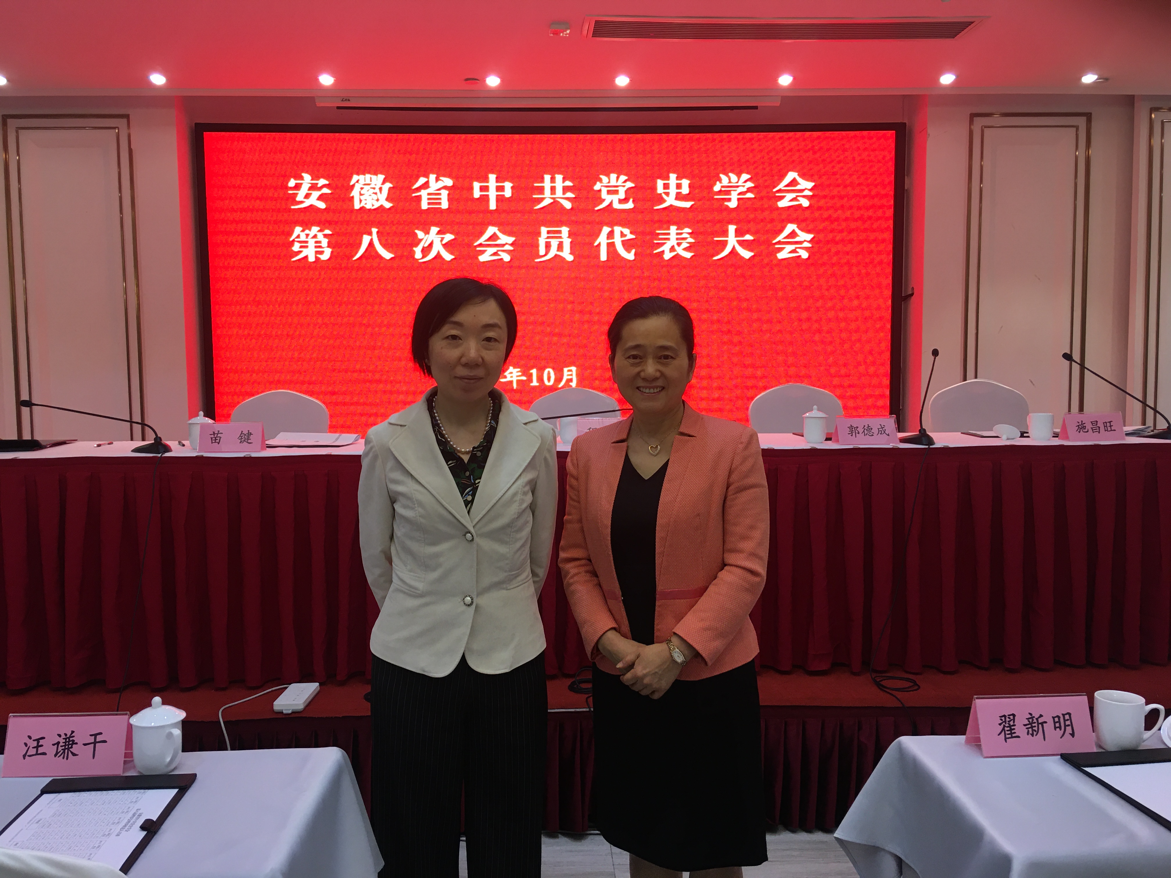 2019年10月25日上午,省中共黨史學會在合肥召開第八次會員代表大會。省委黨史研究院(省地方志研究院)院長程中才當選第八屆省中共黨史學會會長,并作了講話。省委黨史研究院(省地方志研究院)副院長郭德成、苗鍵出席會議。省社科聯學會處處長程繼新、省社會組織管理局副局長張同金到會指導并講話。省委黨史研究院(省地方志研究院)副院長、省中共黨史學會原副會長施昌旺主持會議。我校馬克思主義學院胡艷萍院長和黃瑩瑩老師參會,并當選學會理事。