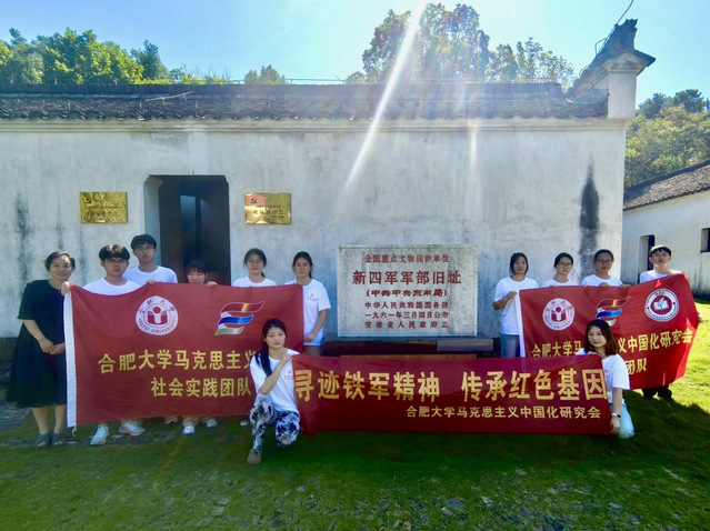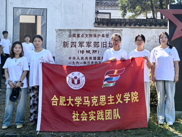 圖為合肥大學馬克思主義學院“星火銘魂,赤韻流芳”小隊于中共中央東南局舊址前合影 隊員們追循著革命先輩的足跡,來到了革命舊址,斑駁的墻面與泛黃的文獻靜靜訴說著過往。隊員們駐足展陳前,聆聽講解員訴說著新四軍在抗日戰爭中浴血奮戰的故事,從敵后游擊到根據地建設,一個個鮮活的事跡讓革命先輩的形象愈發清晰。移步軍部修械所,銹跡斑斑的機床、手工鍛造的槍械零件、簡陋卻實用的工具陳列眼前,大家駐足凝視,深切體會到先輩們在物資匱乏的困境中,用智慧與雙手筑牢抗戰防線的勇氣與堅韌。