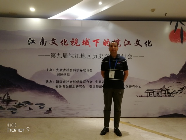2020年9月27日至9月29日,第九屆皖江地區歷史文化研討會在安徽銅陵舉行。本屆研討會由安徽省社會科學界聯合會與銅陵學院聯合主辦,銅陵市社會科學界聯合會、省桐城派研究會、省張恨水研究會、安慶師范大學皖江歷史文化研究中心協辦。研討主題為:江南文化視域下的皖江文化。我院王能引老師參加會議。