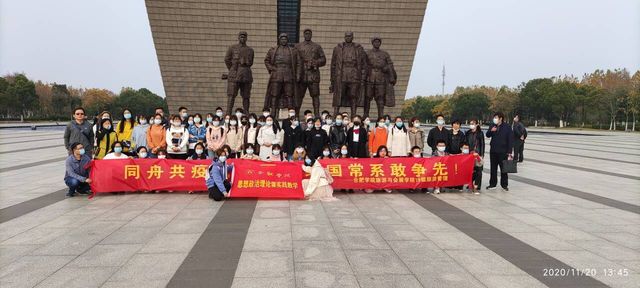 2020年11月20日馬克思主義基本原理概論課教研室李繼友朱鳳琴魏亞劉昆周坤謝敏芳李建瑞七位老師組織19級旅游管理1、2兩個班同學到渡江戰役紀念館開展社會實踐教學活動。