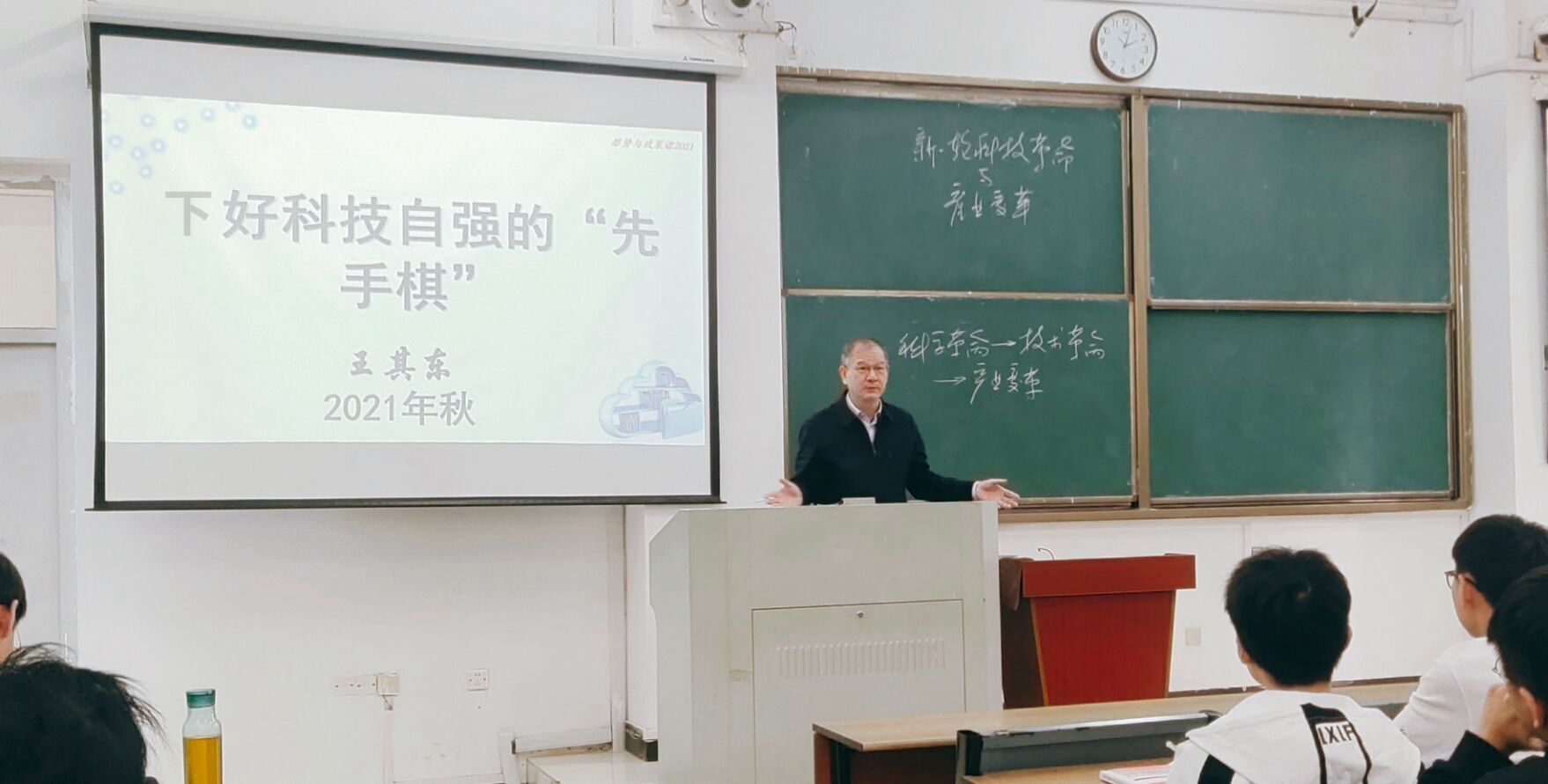 首先,王書記以下圍棋的“先手”與“后手”為喻,從近日召開的“國家科學(xué)技術(shù)獎(jiǎng)勵(lì)大會(huì)“談起,向同學(xué)們介紹了科技自立自強(qiáng)是黨的十九屆五中全會(huì)提出的國家發(fā)展重要戰(zhàn)略支撐,也是站在新的歷史起點(diǎn)上,加快建設(shè)科技強(qiáng)國的重要部署。我國將科技自立自強(qiáng)作為國家發(fā)展戰(zhàn)略支撐的主要原因在于,黨的十八大以來,我國科技事業(yè)取得了舉世矚目的成就,但科技發(fā)展水平特別是關(guān)鍵核心技術(shù)研發(fā)能力、重大原始創(chuàng)新能力、基礎(chǔ)研究水平同國際先進(jìn)水平相比還有一定差距,同全面建設(shè)社會(huì)主義現(xiàn)代化國家的要求還很不適應(yīng)。人們迫切需要科學(xué)技術(shù)解決方案,需要增強(qiáng)科技創(chuàng)新第一動(dòng)力。