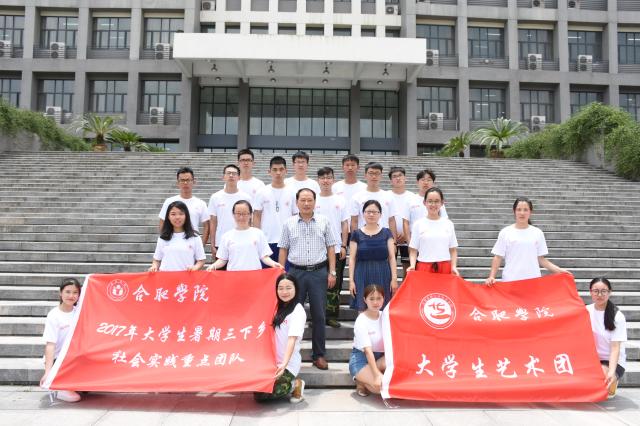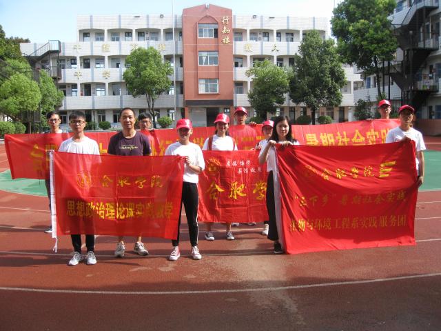 710, 魏亞老師和經濟系鄧秋實老師帶領合肥學院經濟系“三下鄉”團隊一行24位同學,奔赴蕪湖市無為縣蜀山鎮開展為期10天的社會實踐活動。本次“三下鄉”實踐活動通過“中國共產黨黨史宣傳教育”及“中國夢宣傳教育活動”等理論宣講活動,“弘揚中國夢”、“爭做追夢人”、“紅色電影放映”及“防溺水安全教育”等系列支教活動,“保護生態環境”、“倡導文明旅游”及“金融知識三下鄉”等專題系列活動,“留守兒童、農村孤寡空巢老人的生存狀態調研”及有關扶貧調研活動等一系列豐富多彩的活動方案及有效形式的設計,不僅在實踐中堅持貫徹了中央有關當代大學生思想道德和品行意志的培養要求,進一步端正了大學生的價值觀和社會觀,磨練了的意志,奉獻了愛心,同時也幫助同學們提高了獨立思考和分析解決問題的能力。