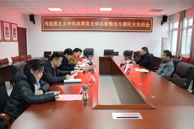 1月18日上午,馬克思主義學院直屬黨支部召開了巡察整改專題民主生活會。校黨委委員、黨委組織部部長、離退休工作處處長白義香和校紀委辦公室紀檢監察室主任徐成文到會督導。學院直屬黨支部副書記、院長陳志超,直屬黨支部書記、副院長蘇冰和支委委員參加會議,會議由蘇冰主持。