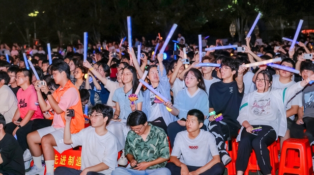 晚會在激昂澎湃的《龍獅迎新》中拉開帷幕,龍騰獅躍,點燃全場熱情。街舞俱樂部帶來的《這!就是街舞》以爆發力十足的表演,彰顯青春活力,贏得陣陣掌聲。教師節目同樣精彩紛呈:舞蹈《不如見一面》深情款款,獨唱《愛的回歸線》引發共鳴。在師生同臺演繹的器樂合奏《世界贈予我的》中,舒緩旋律與溫暖互動,深深撫慰了新生的思鄉之情。模特表演環節中,模特協會學子步伐從容、儀態自信,將現場氣氛推向高潮。晚會在《我愛你中國》的全場大合唱中圓滿落幕。激昂的旋律不僅為晚會畫上句號,更將愛國情懷與時代責任深深烙印在每位學子心中。