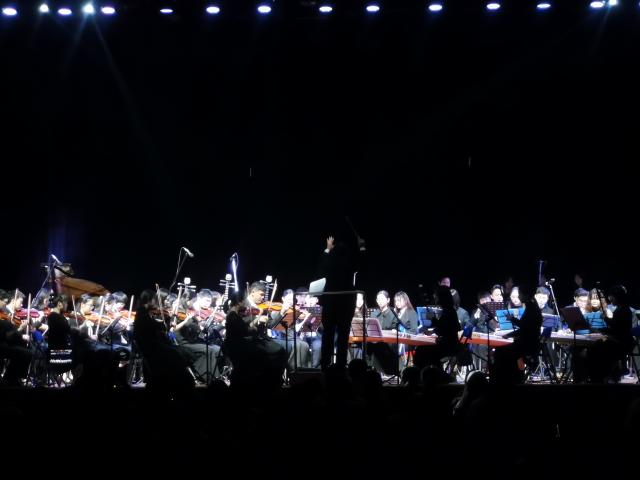 活動伊始,安徽大學青年藝術發展中心的兩位成員引領我校藝術團代表進入會場。活動在一首慷慨激昂的交響樂《紅旗頌》下正式拉開帷幕。此次音樂會由交響樂、獨唱、合唱、二重奏等多個部分組成,包含古典和流行的元素,可謂精彩紛呈。交響樂《北京喜訊到邊寨》、合唱《今天是你的生日》、《我和我的祖國》達了對祖國深深的熱愛和情感,交響樂《冰雪奇緣組曲》、二重奏《天氣之子》以及鋼琴四手聯彈《龍貓》掀起了觀眾們對動漫電影美好的回憶。如果說《五月天組曲》和《那些年,我們一起追過的女孩》的精彩演繹掀起了此次音樂會的高潮,勾起了觀眾對青春的懷念,那么《卡農》、《小夜曲》等作品為在場觀眾們呈現了一種雅致莊重的古典美。交響樂團的樂手用嫻熟的技藝演繹了古典作品的風韻。合唱《我喜歡》、《青春舞曲》也十分地美妙動聽。最后,音樂會在節奏歡快的《拉德斯基進行曲》圓滿落幕