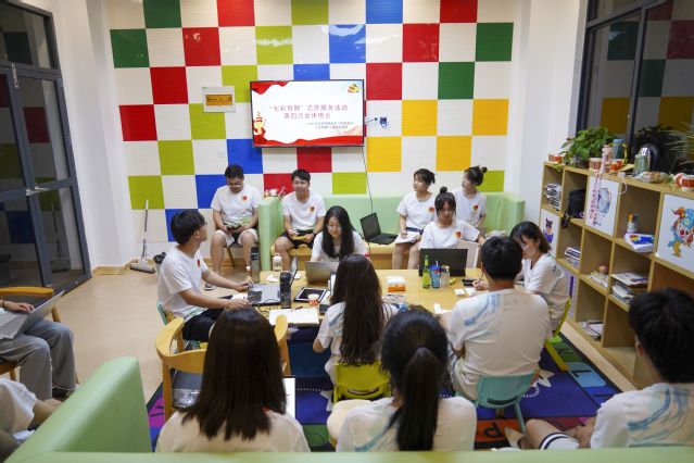 晚上九點(diǎn),全體隊(duì)員于青少年活動(dòng)室召開“七彩假期”志愿服務(wù)活動(dòng)第四次全體例會(huì),首先,隊(duì)長(zhǎng)汪欣楠就當(dāng)天的總體情況進(jìn)行總結(jié),黃偉說明了宣傳方面目前存在的問題,并與其他成員討論解決方案。