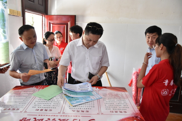 到達柿樹崗鄉之后,調研團隊面對蚊蟲叮咬、天氣炎熱和較為艱苦的住宿環境沒有表現出畏難情緒,而是即刻參與到當地醫療衛生工作之中。大家前往當地衛生院,協助醫護人員完成疫苗接種工作,幫助維護現場秩序,同時也為當地人民普及基礎醫療知識,解答關于疫苗接種問題,消除未接種居民心中的疑惑與擔憂。