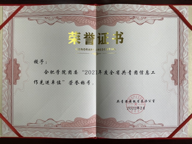 近期,共青團(tuán)安徽省委對(duì)2022年度全省共青團(tuán)信息工作先進(jìn)集體進(jìn)行表彰,共有7個(gè)高校團(tuán)委榜上有名。我校團(tuán)委在2021年獲評(píng)之后再次榮獲“2022年度全省共青團(tuán)信息工作先進(jìn)單位”稱號(hào)。
