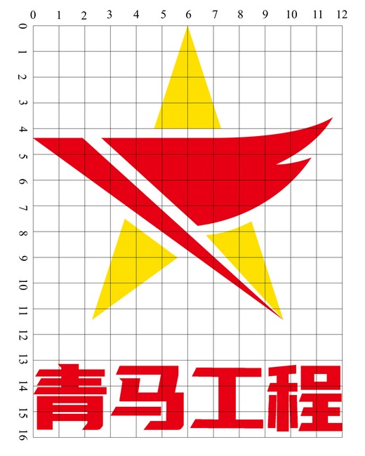標(biāo)識由紅黃相交的正五角星圖案和“青馬工程”四個紅字組成,標(biāo)識寬高比例統(tǒng)一為3∶4。
