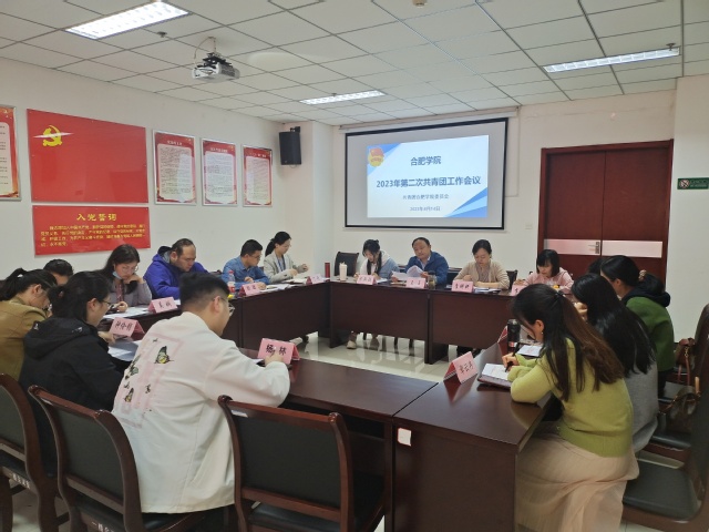 414日,合肥學院2023年第二次共青團工作會議在行政樓一樓會議室召開,校院兩級團干部參會,校團委書記王玉主持會議。
