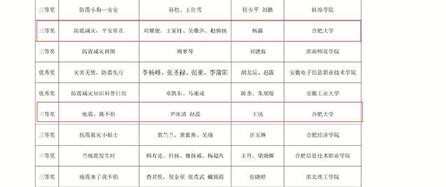 近日,由安徽省地震局、安徽省教育廳、共青團安徽省委、安徽省科學技術協會共同舉辦的安徽省第六屆大學生防震減災科普作品征集大賽圓滿落幕。我校學生作品《地震,我不怕》與《防震減災,平安常在》榮獲省級三等獎。