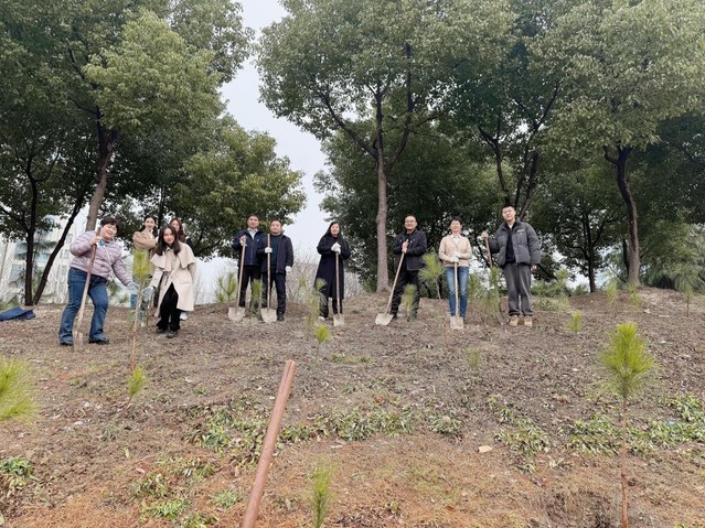 滿懷春的生機,播下希望之種。在52棟毗鄰的池塘植樹現場,全體同志手持鐵鍬等勞動工具,分工明確、協作無間,井然有序地進行挖坑、鏟土、栽植等工序。同志們精神飽滿,斗志昂揚,每個環節都體現出嚴謹細致的工作態度,積極投身于植樹護綠的偉大實踐中。本次活動不僅顯著提升了同志們對環境保護重要性的認識,而且充分彰顯了共建綠色校園的積極作為。