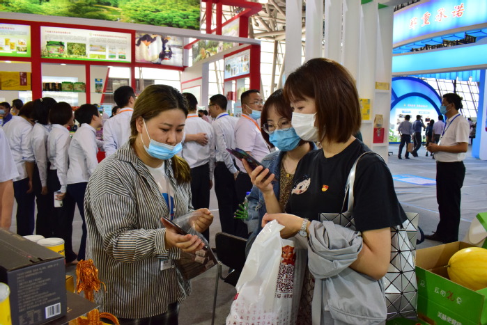 在鳳臺縣的展區(qū)前,鳳臺縣委副書記汪世福對設(shè)計學(xué)院魯先瑾老師說:“合肥學(xué)院響應(yīng)省直工委號召,精心策劃周密安排,組織黨員干部職工,積極支持農(nóng)業(yè)農(nóng)村經(jīng)濟(jì)發(fā)展,在疫情防控常態(tài)化和安全生產(chǎn)并重的當(dāng)下,共產(chǎn)黨員走在了六保六穩(wěn)的最前列,我們非常感動。”