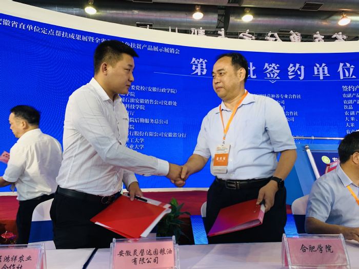 同時,我校公管處處長徐勁松與安徽靈璧達(dá)園糧油有限公司負(fù)責(zé)人出席簽約儀式,并簽訂扶貧合同。這是我校根據(jù)省直工委統(tǒng)一部署,深化精準(zhǔn)扶貧,推動靈璧農(nóng)業(yè)產(chǎn)業(yè)轉(zhuǎn)型升級,把扶貧脫貧工作做細(xì)做好的重要舉措,為進(jìn)一步深化校企合作,全面實現(xiàn)產(chǎn)銷無縫對接具有重要意義,為建立長效扶貧開發(fā)機(jī)制提供有力保障。