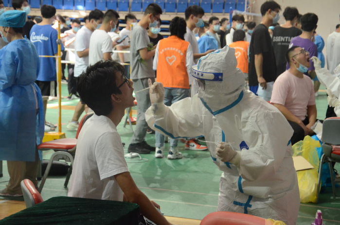學校還第一時間組織了全員核酸檢測,為新學期開學筑牢校園防疫安全墻。采樣點合理布局并設置卡位,積極落實相關配套設施、物資準備和現場保障。采樣過程中,醫務人員嚴格按照相關流程指揮疏導、規范操作,受檢學生及教職工有序進入采集點,期間全程佩戴口罩且保持安全距離,在檢測完成后迅速離場,大幅提高采集效率。