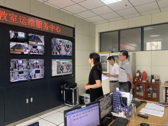 9月1日上午8時,副校長陳秀,教務處處長王曉峰,教學質量監控評估處處長余國江,后勤集團經理葉道全,教務處副處長儲忠、倪澤強、王仁寶帶隊檢查開學首日教學情況。檢查組深入教學一線檢查教師教學工作和學生學習狀態,檢查多媒體維保中心運行情況,并通過多媒體網絡集成中心視頻查看全校第一天上課情況。陳秀表示,各部門要全力做好教學保障工作,同時要堅持常態化疫情防控的各項措施,為學生高效率學習創造良好環境。