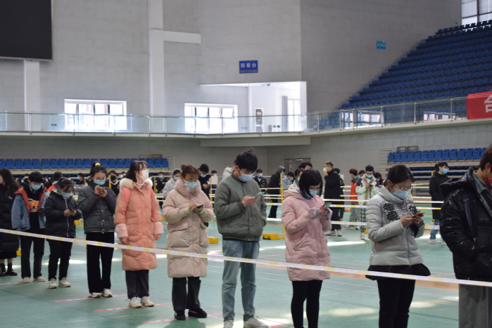 為保證平穩順利開學,此前學校召開2022年春季學期第一次學生工作例會,綜合考慮當前疫情形勢、防控政策要求和本地本校實際,制定了春季學生返校方案開展返校疫情防控實戰演練,確保疫情防控領導體制、應急機制、指揮體系高效運行,強化疫情防控部署、指導和督促檢查多方面完善服務保障工作,為學生平安返校保駕護航。2月16日起,我為返校師生全面提供了免費核酸檢測。“請同學們戴好口罩,保持一米距離,出示安康碼,先登記后檢測……”二期體育館內,登記員對學生遞交的安康碼進行掃碼核驗,醫務人員依次采集咽拭子。學子們核酸檢測區依次排隊、掃碼、登記、檢測,秩序井然。在教師、學生和醫護人員的全力配合下,全校順利完成核酸檢測任務,嚴格做到了“應檢盡檢,不漏一人”。