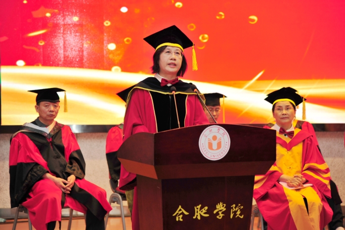 吳春梅對畢業(yè)生提出了四點希望:時代各有不同,青春一脈相承,請大家始終愛黨愛國;道路各有不同,奮斗一如既往,請大家堅持自立自強;境遇各有不同,初心一以貫之,請大家永葆本色本我;成就各有不同,人生一樣精彩,請大家務(wù)必保重珍重。她表示,合肥學(xué)院永遠(yuǎn)是同學(xué)們的溫暖港灣和堅強后盾,祝愿同學(xué)們一路錦繡,一生芳華。