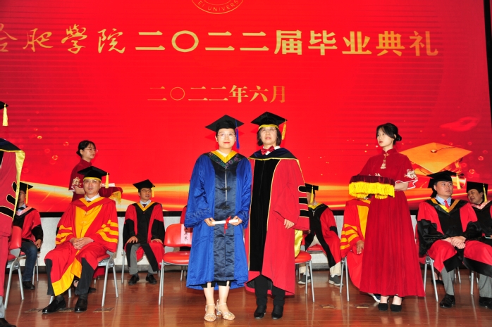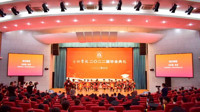 校長、校學(xué)位評定委員會主席吳春梅教授代表學(xué)校對同學(xué)們圓滿完成學(xué)業(yè)表示熱烈祝賀。在給2022屆畢業(yè)生的寄語中,她談道:“我們攜手走過不可復(fù)制的旅途、擁有獨一無二的回憶。四年來,我們共同經(jīng)歷了國家大事要事,從國慶閱兵的震撼人心到建黨百年的榮光輝煌,從疫情下白衣為甲、逆行出征到高原上寸土不讓、誓言鏗鏘。四年來,我們共同推動合肥學(xué)院高速發(fā)展,2018年整體進入安徽省第一批次招生,2019年16個專業(yè)榮獲首批國家級省級一流本科專業(yè)建設(shè)點,2020年大學(xué)更名取得重要進展,2021年碩士點建設(shè)實現(xiàn)跨越性發(fā)展,2022年“三業(yè)一體”人才培養(yǎng)模式推深做實。四年來,我們共同見證同學(xué)們成長蛻變,2022屆畢業(yè)生大多出生在新世紀(jì),生來就被寄予了新世紀(jì)的希望,雖遭遇百年疫情,但同學(xué)們積極配合學(xué)校防疫措施,在堅守中學(xué)習(xí),在抗疫中成長,構(gòu)筑起校園安全的堅強屏障……”