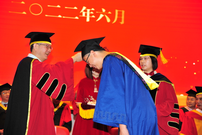 校領(lǐng)導(dǎo)為優(yōu)秀畢業(yè)生代表授學(xué)位、拔流蘇,為2022屆“榜樣學(xué)子”、西部計劃畢業(yè)生、優(yōu)秀畢業(yè)生頒獎。