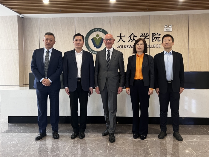 吳春梅對施泰格博士一行表示熱烈歡迎。在談話中,吳春梅回憶了9月到訪德國大眾總部的美好經歷,感謝大眾集團相關領導對大眾學院建設給予的支持。她表示,在省人社廳和合肥市政府的共同努力下,大眾學院獲得了經費支持和場地支撐,大眾集團提供了產業技術指導以及高質量的課程和師資。