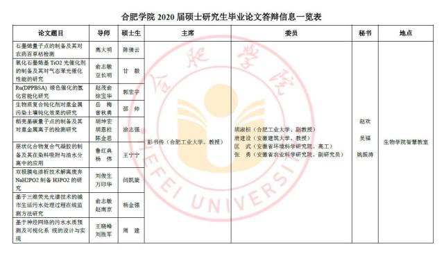 合肥學院2020屆碩士研究生畢業(yè)論文答辯公告