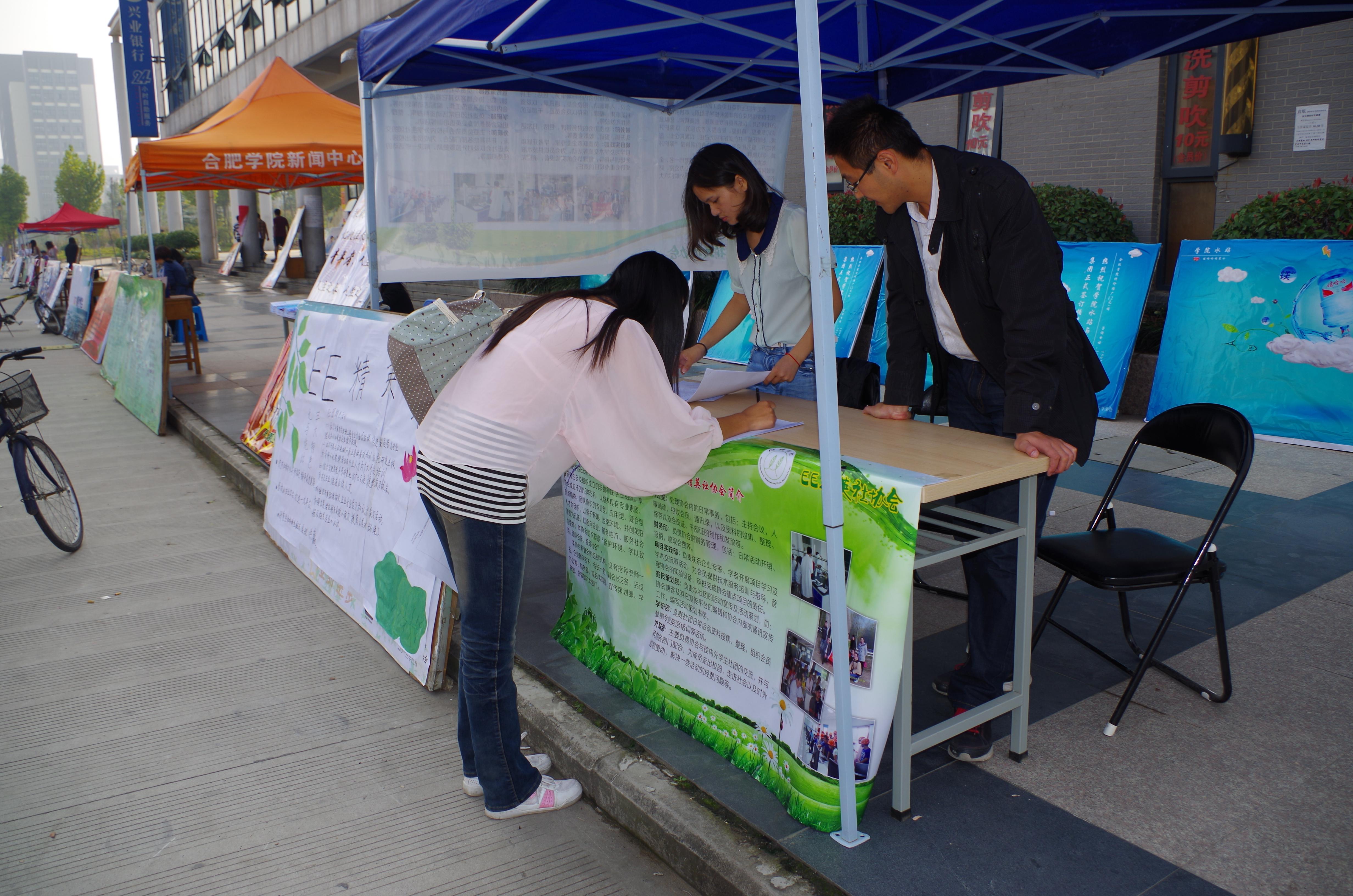 2013年10月17日合肥學院研究生環境工程精英社(Environment Engineering精英社,簡稱EE精英社)第一次招新圓滿結束。本次社團招新共招會員38名,社團成員以研究生為主體,其中2013級研究生23人,本科生15人。