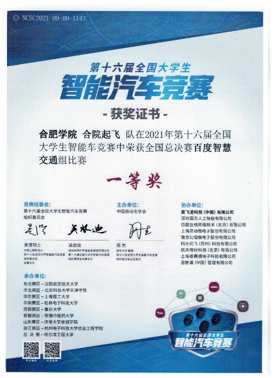 合肥學院智能車團隊于2007年10月成立,2008年首次參賽,在校領導、各部門大力支持下,在先進制造工程學院黨政領導的指導下,長期以來形成“堅持拼搏、團結奉獻”的良好氛圍,在省內和全國競賽中取得了優異成績,自參賽以來培養了獲省級以上獎勵的學生近300余人,獲省級以上獎項128項,其中獲得國家一等獎4項(其中1項為全國第二名,此為安徽賽區在全國總決賽中最好成績),二等獎14項,三等獎1項。以賽促教,該項賽事提升了我校學生動手能力和創新能力,在與國內一流高校學生的同場競技中,展示了我校學子的風采,充分體現了學校應用型辦學理念在學生工程實踐能力、創新意識、綜合素質等方面的培養成果。