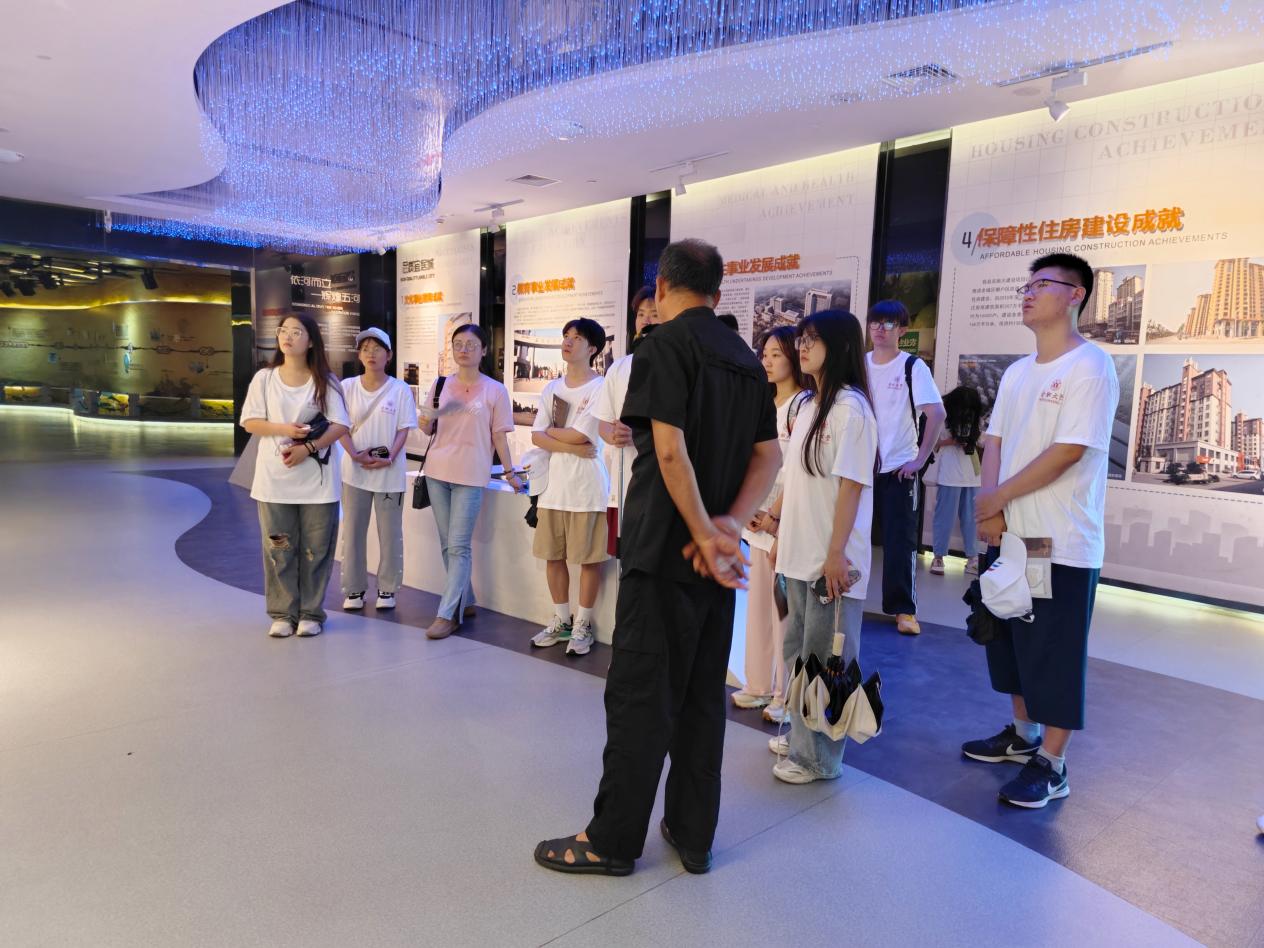 隨后,團隊一行來到了五河縣城市規劃館。同學們在城市規劃館內,通過沙盤模型、詳實的規劃圖等豐富的資料,對五河縣的歷史起源、發展歷程、規劃理念以及未來發展方向有了更為直觀和全面的了解。城市規劃館的工作人員還給同學們介紹了五河縣在城鄉建設、工業農業發展、文旅產業和經濟社會發展方面所取得的成就,以及面臨的挑戰和機遇。同學們紛紛表示,將把此行的所見所感、所學所思,轉化為今后學習和實踐中的動力和靈感。