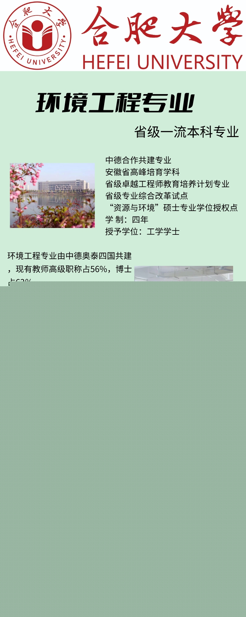 培養目標及特色:本專業培養德、智、體、美、勞全面發展,具備可持續發展理念及科學、工程素質與能力,具備水、氣、物理性、固體廢物等污染防治、環境評價與規劃、生態修復等專業知識的復合型人才;培養具有污染物控制工程設計及從事環境工程運營與管理等方面的能力,能在環境工程及相關領域第一線從事環境監測、設計、施工、管理、教育和研究等工作的應用型專門人才。