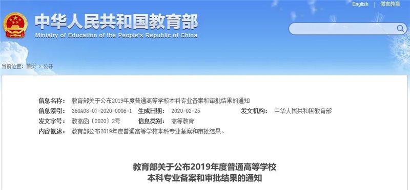 日前,教育部公布2019年度普通高等學校本科專業備案和審批結果。