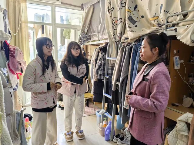 走訪過程中,張愛萍書記對宿舍內環境衛生、用電安全等方面進行檢查,她強調同學們要增強安全意識,規范用電行為,保持宿舍整潔,共同營造一個安全、整潔、溫馨的住宿環境。走訪研究生宿舍的過程中,查金萍院長詳細詢問了研究生的研究方向、學術進展及未來規劃,并給予專業性指導與建議,鼓勵同學們要勇于創新、敢于挑戰,在學術研究中不斷追求卓越,做到學有所成、學有所獲。