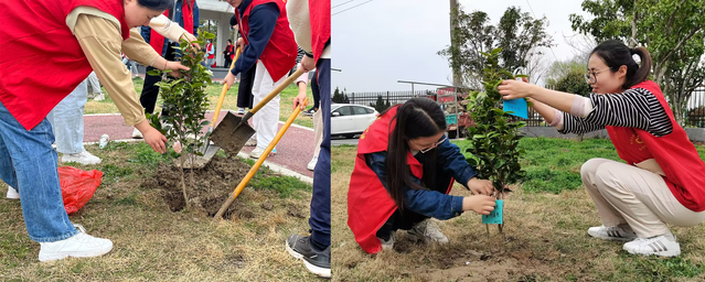 一年時光春最好,植樹添綠正當時。在本次活動地點,志愿者們被分為五組,黨員志愿者作為領隊,各小組井然有序地種植小樹苗。期間雖然下著小雨,氣溫偏低,但黨員和志愿者們熱情高漲,彼此科學分工、密切合作,揮鍬鏟土、扶植樹苗、培實新土……在大家的相互配合下,一排排樹苗迎風挺立。
