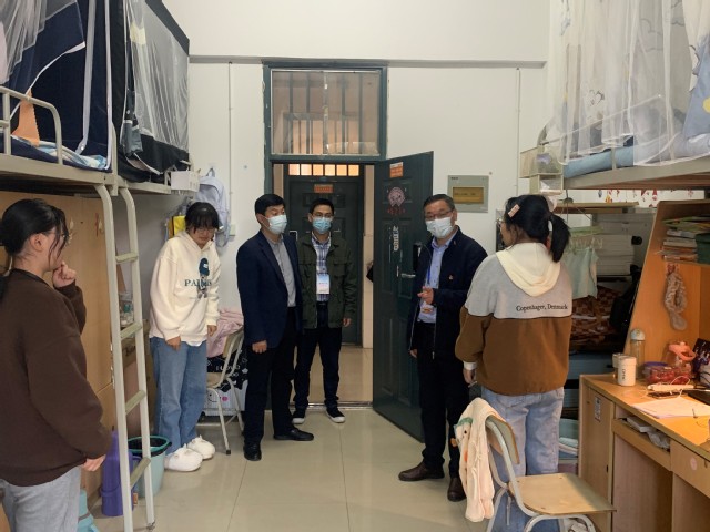 為切實做好疫情防控,關心關愛學生生活與健康,學生處處長朱濤、語言文化與傳媒學院黨委書記儲昭輝、院長丁增武、副書記張愛萍、副院長殷明明前往各社區學生宿舍,走訪看望學生。