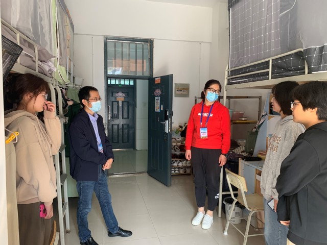在疫情防控特殊時期校領導深入學生寢室走訪慰問,深入了解學生們的實際訴求,與學生近距離交流,不僅有效緩解了學生在校園封閉期間面臨生活、學習等問題的焦慮情緒,更拉近了校領導與學生間的距離,增強了同學們的幸福感和歸屬感。